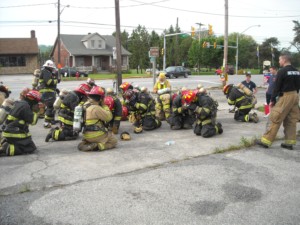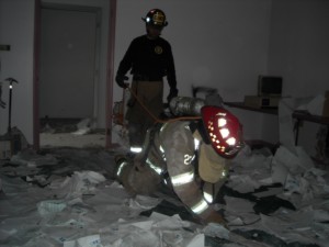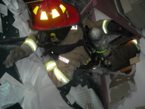 of a hoseline, and trapped by a simulated ceiling collapse. All firefighters