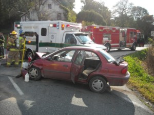 injuries. The engine crew split for patient care, traffic control, fluid