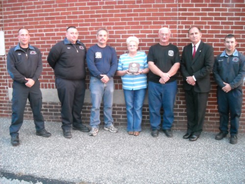 fire company and a plaque for the Community Helping Hand Award for Linda's service