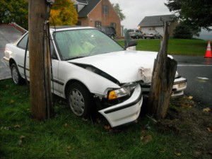 the area of Frysville Road at Libhart Mill Road, reported vehicle into a pole,