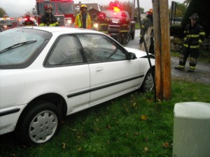 smoking. Chief 21 arrived to find one vehicle into a pole, no fire in the