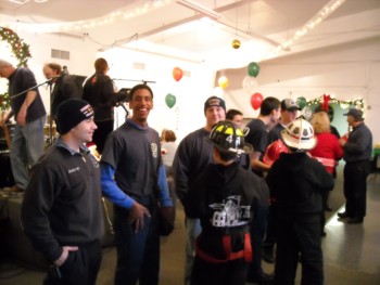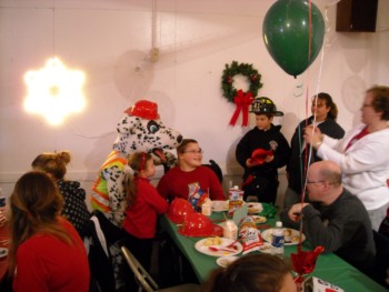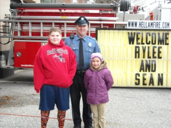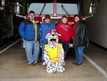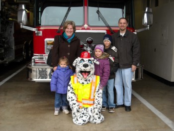 handed out candy canes and fire helmets to many smiling children. |