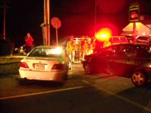 injuries. Chief 21 arrived to find a two vehicle accident, blocking, leaking