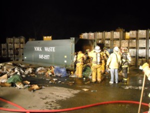 a dumpster fire next to Flinchbaugh Engineering, Inc., bringing a full structure