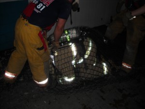 rescue techniques for a firefighter that is well below the bottom sill of the