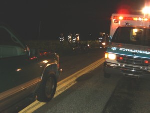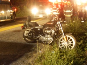 Chief 21 arriving on scene with one motorcycle off the road and one patient,
